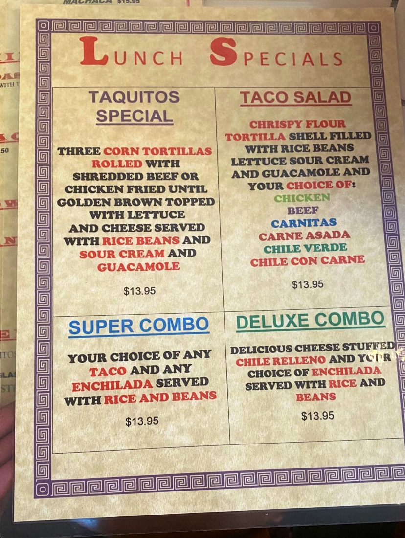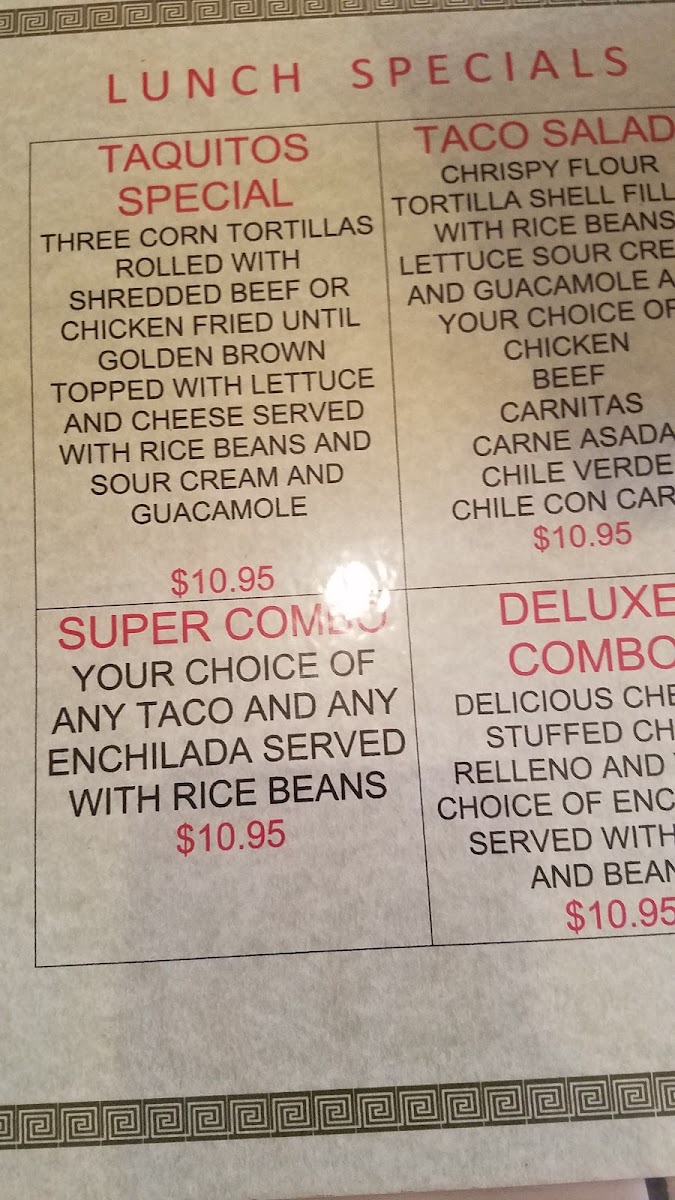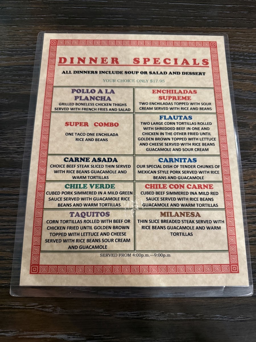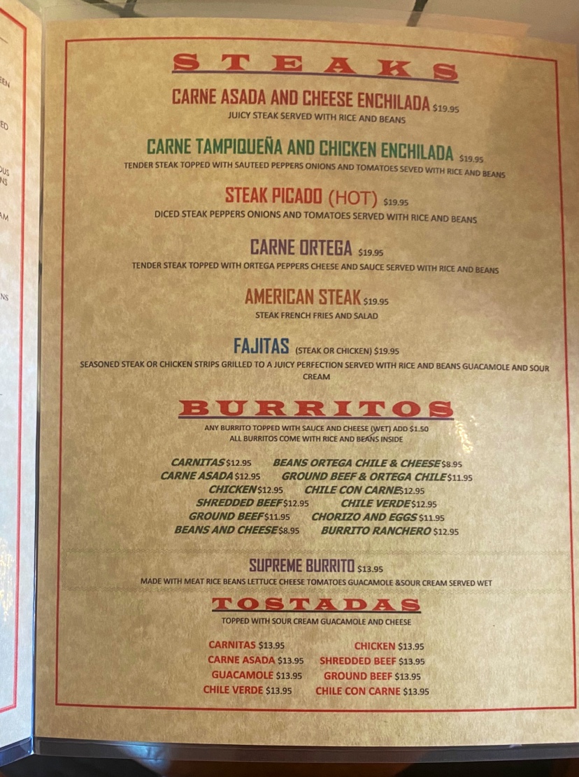 You’ll find familiar favorites like freshly made chips and salsa, hearty burritos smothered in rich sauces, and flavorful fajitas that invite leisurely dining. Breakfast options like huevos rancheros and fried egg plates provide a warm start to the day, while tostadas and taquitos make for simple, satisfying bites when you’re in the mood for a lighter meal.